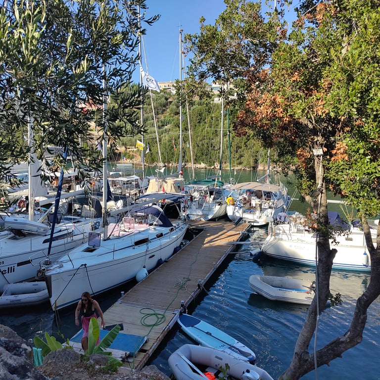 Kleine reizvolle Bucht mit der Möglichkeit, an einem Ponton festzumachen. Mittels Muringleine kein Ankerstress, die Hilfsbereitschaft der Marineros ist außergewöhnlich und sehr sympathisch. Gegenüber der Anlegestelle sind einige Bojen und Plastikbehälter für die Festmacherleinen kleiner Sportboote. Gutes Restaurant und kurzer Weg nach Syvota.