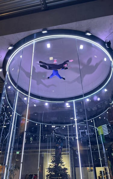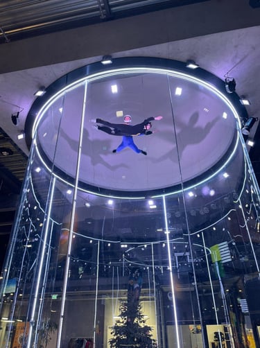 Frisch vom Karibik-Törn zurück mutet die Bezeichnung "Hurricane Factory" für unserem Flug im Windkanal beinahe schon zynisch an. Aber tatsächlich wirkt die Windgeschwindigkeit in Orkanstärke und der geschützten Glashülle gar nicht mehr so bedrohlich wie in freier Natur.